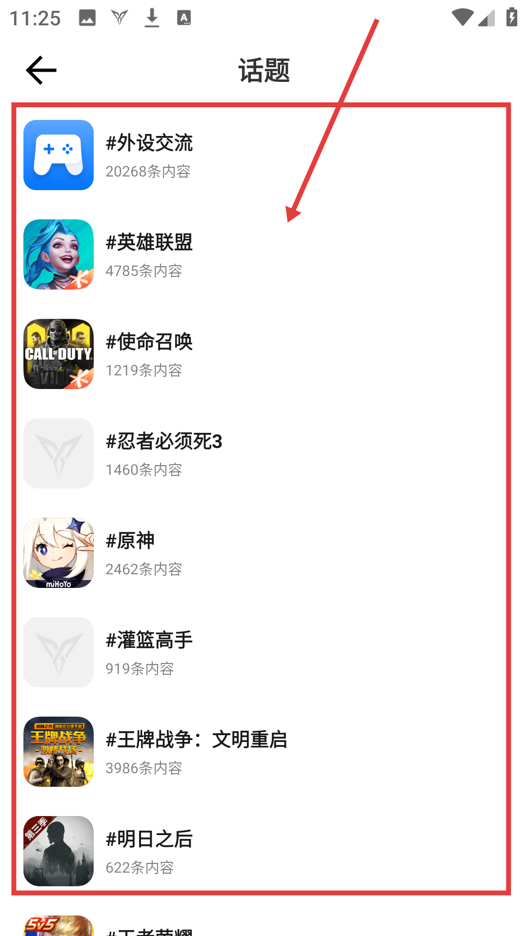 2、在话题列表页,有#外设交流#英雄联盟等多个话题,按需选择话题参与讨论啦。