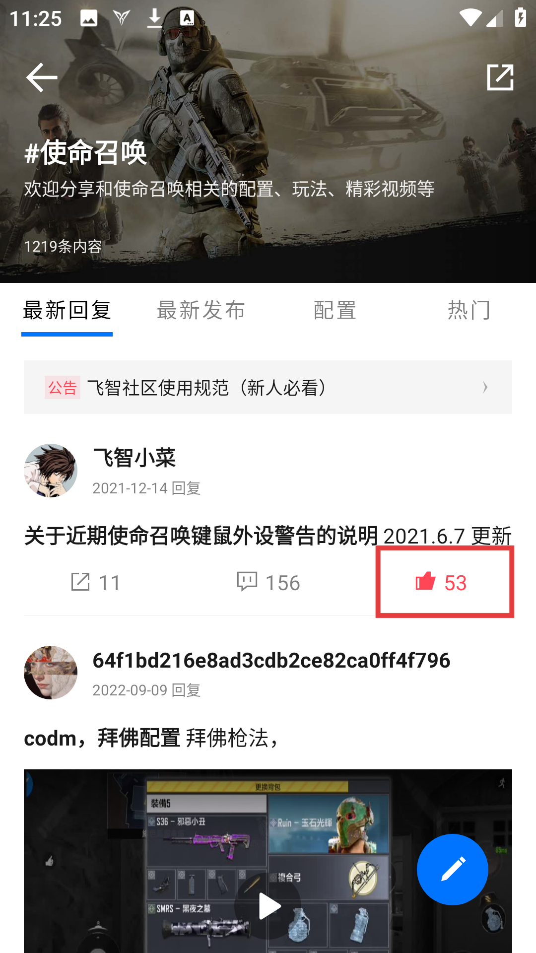 3、进入#使命召唤#话题页,可查看相关帖子,点帖子下方点赞按钮能表达支持呢。