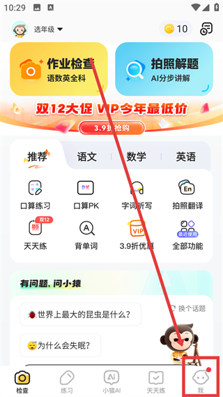 1、打开登录小猿口算app,点击首页的【拍照检查】