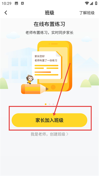 3、进入班级页后,点【家长加入班级】按钮,就能跳转到加入班级的信息填写页面啦。