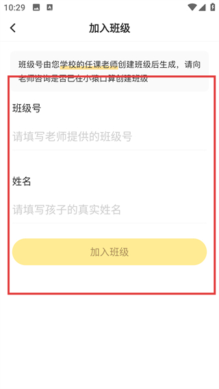 4、在加入班级页填好【班级号】和【姓名】,点【加入班级】按钮,就能完成班级加入操作哦。