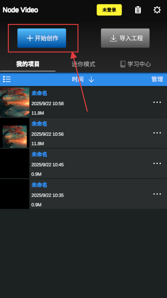 1、NodeVideo主界面有【+开始创作】按钮,点击它就能开启视频创作之旅啦。