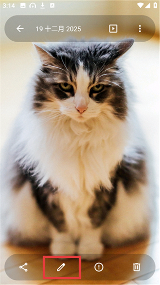2、在图片预览页点击底部的编辑按钮,就能进入图片编辑界面,解锁裁剪、滤镜等编辑功能哦。