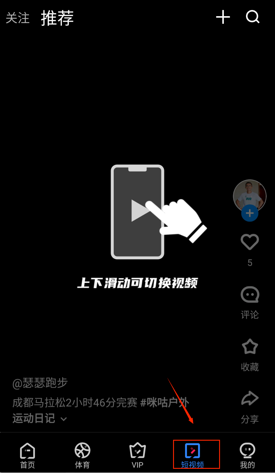 3、短视频功能适合碎片时间,上下滑动刷到的视频类型丰富,如马拉松实况、影视花絮等,遇到喜欢的可以点关注,系统会推荐类似内容呢。