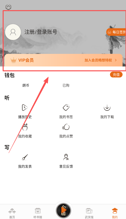 1、首先打开软件,在底部导航栏找到“我的”并点击,在这里可以注册或登录账号,如果想获得更多权益。
