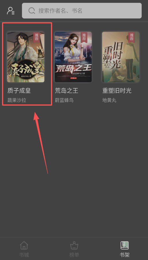 2、在书城主页的推荐区域,直接上下滑动浏览,像质子成皇、荒岛之王这些书都会以封面卡片形式展示。