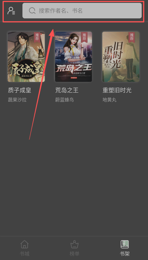 1、在主界面顶部搜索框,你可以直接输入作者名或书名来精准查找。