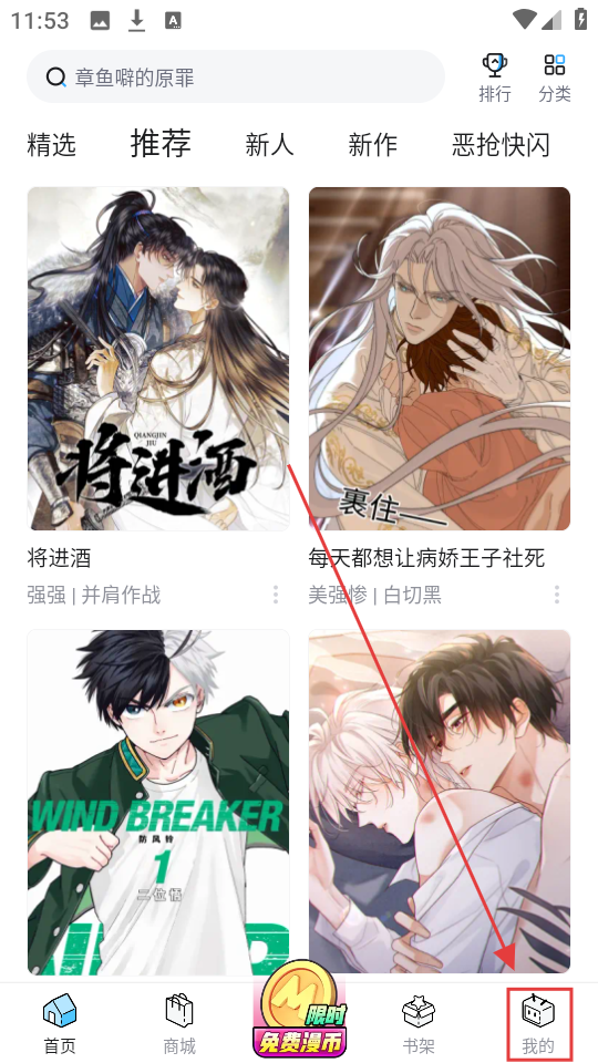 1、在首页看完漫画后,点右下角【我的】进入个人页面哦,这是设置功能的入口呢。