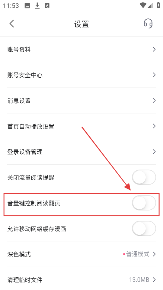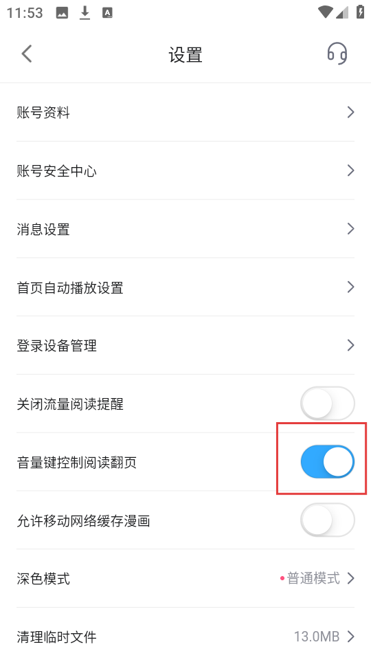 3、在设置里找到【音量键控制阅读翻页】选项哦,把它的开关打开,阅读时用音量键翻页超方便的哟。