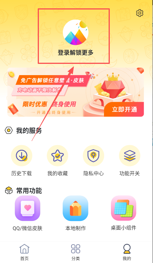 1、首先呢,在首页或“我的服务”里找到“QQ/微信皮肤”、“充电动画”等功能入口,点击进入后,你可以浏览并选择喜欢的样式。