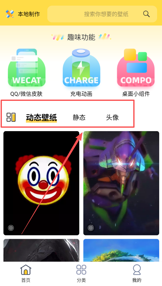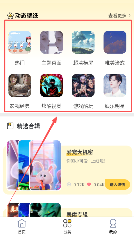 3、发现更多精美壁纸可以在“分类”或“动态壁纸”专区里,那里有热门、主题桌面等多种分类,再点击“设置壁纸”就能一键应用了。