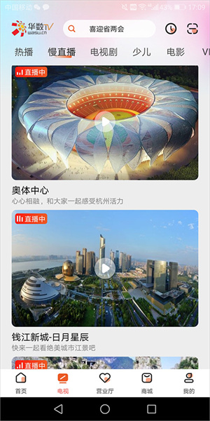 1、打开华数电视app,点击底部导航栏中的【电视】,进入电视页面中