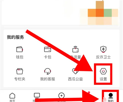 1、打开手机上的西瓜视频APP,进入后点击页面右下角的“我的”进入,然后在“我的服务”下方选择“设置”功能。
