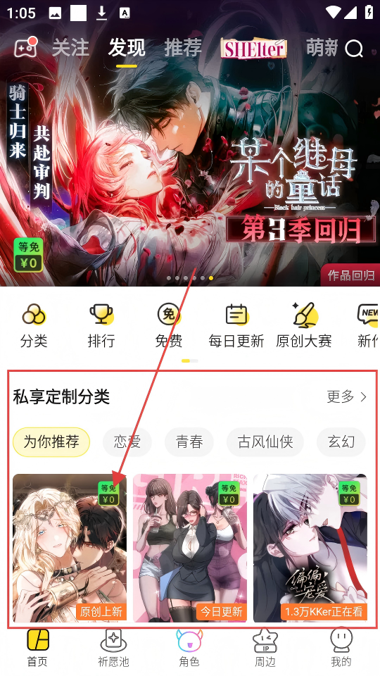 1、发现页面【私享定制分类】里有超多推荐作品,选感兴趣的点进去,开启精彩阅读之旅吧。