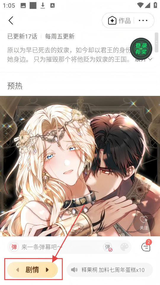 4、进入具体话数阅读页面,能欣赏精彩画面和剧情,还能进行互动呢。