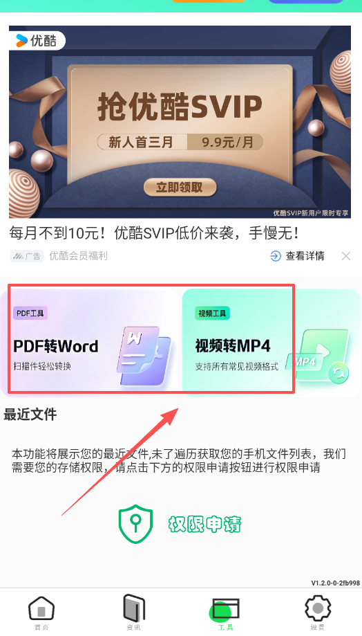 4、最后,有文件需要处理的话,选择具体类型如视频或图片进入,还能使用PDF转Word或视频转MP3等实用工具。