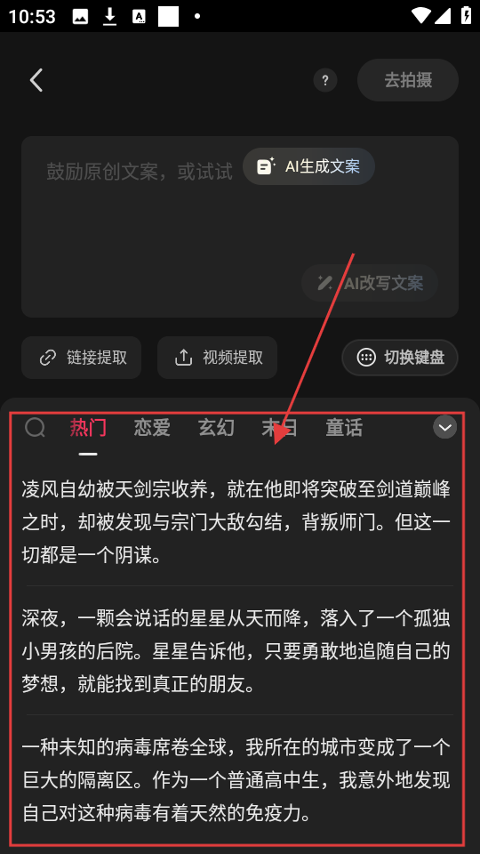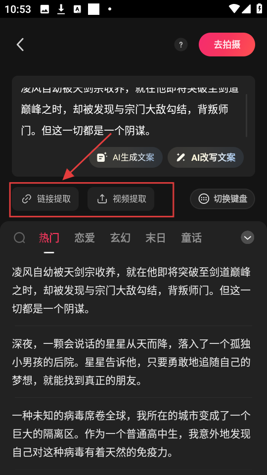 3、点击【链接提取】或【视频提取】,可提取外部链接或视频中的文案,丰富创作内容哦。