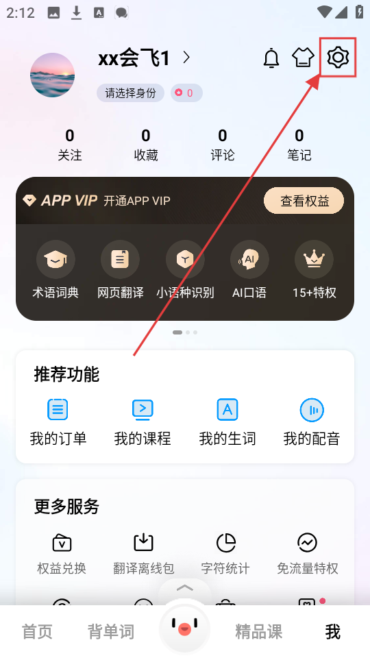 2、进入个人页面,看到右上角设置图标,点击它,就能进入设置页面,调整各种设置。