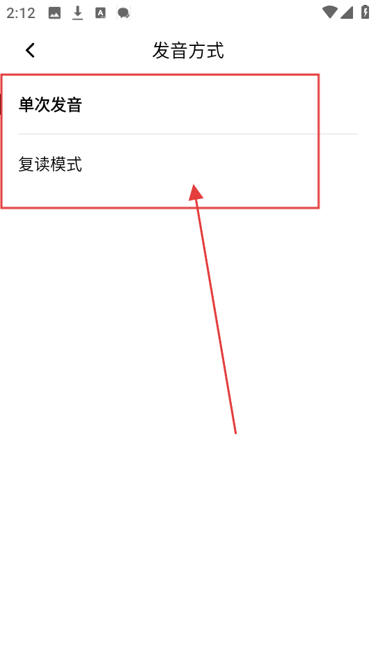 4、在发音方式选择页面,有【单次发音】和【复读模式】,选你想要的发音方式,这样发音就按你选的来啦。