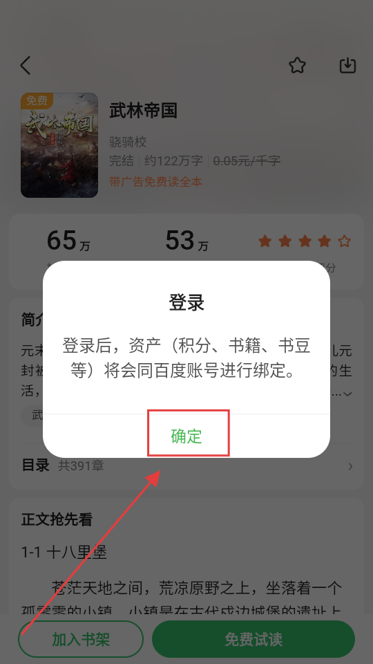 2、点击感兴趣的书籍进入详情页后,点击右上角下载按钮,可触发登录提示哦。