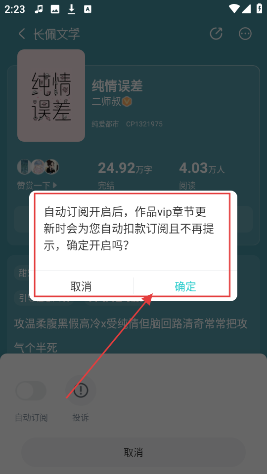 4、开启自动订阅功能时,会弹出确认弹窗,点击【确定】,自动订阅就成功开启啦。