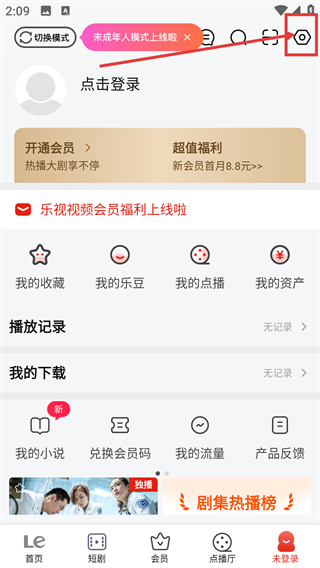 1、打开“乐视视频”,点击右上角“四个口图标”;
