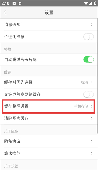 3、在设置页面找到【缓存路径设置】选项并点击,就能进入缓存路径的选择界面,调整存储位置啦。
