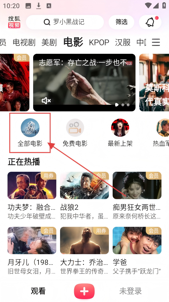 3、进入电影专区后,点击【全部电影】,可查看所有电影资源呢。
