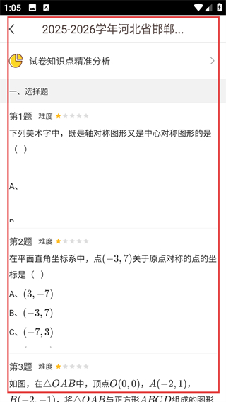 4、选好目标试卷后点击进入详情页,就能查看试卷的题目内容,还能看到知识点分析等辅助信息哦。