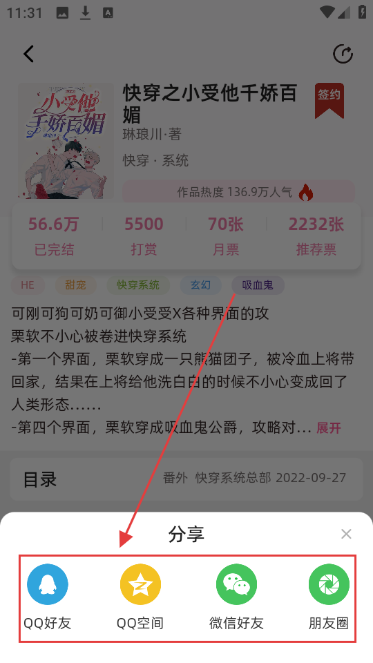 3、在分享选项中,可选择QQ好友、微信好友等分享渠道,将书籍分享给他人啦。