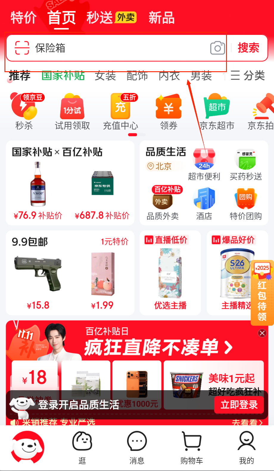 1、打开京东APP,首先在首页顶部找到“登录/注册”按钮,点击后输入手机号获取验证码,完成登录才能享受个性化推荐和会员权益呀。