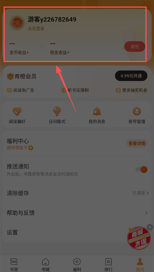 4、最后呢,记得善用“我的”页面中的功能,比如点击青橙会员可以了解免广告、听书无限制等权益。