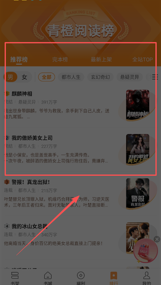 3、然后呢,在“推荐榜”区域,你可以根据全部、都市人生、最新上架等不同维度来浏览。