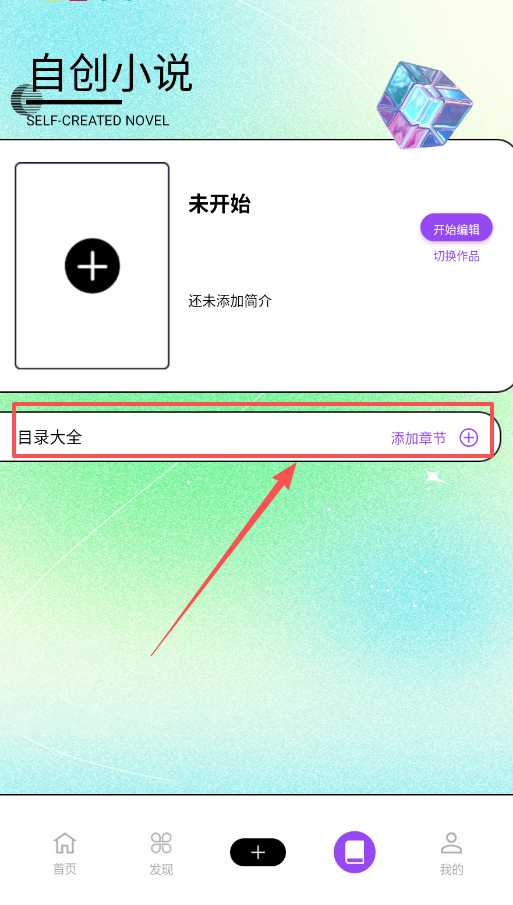 2、创建后,在作品页面找到“目录大全”,使用“添加章节”功能来搭建故事骨架,逐章填充你的创意。