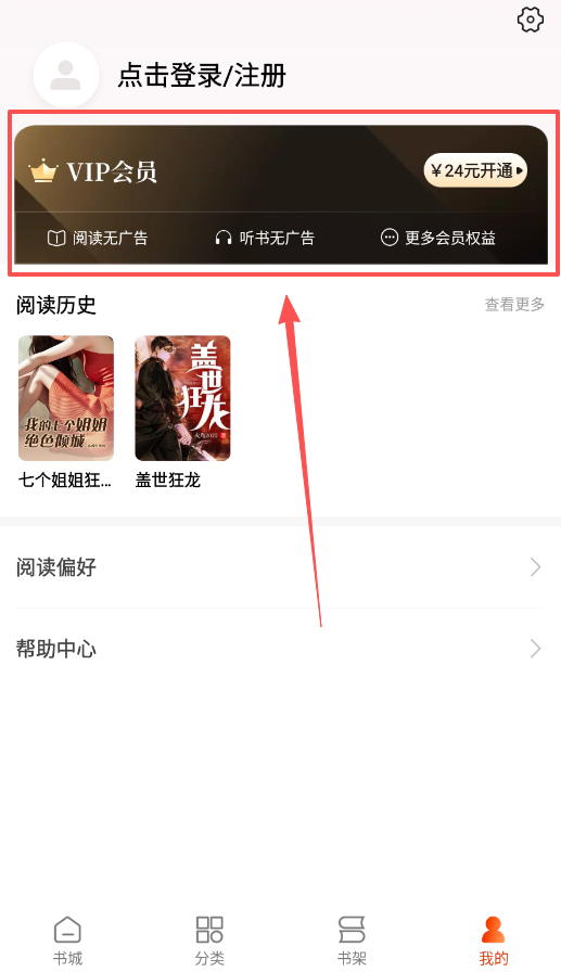 3、个人中心需要登录后使用,在这里你能查看阅读历史记录、管理偏好设置,还能了解VIP会员去除广告等特别服务。
