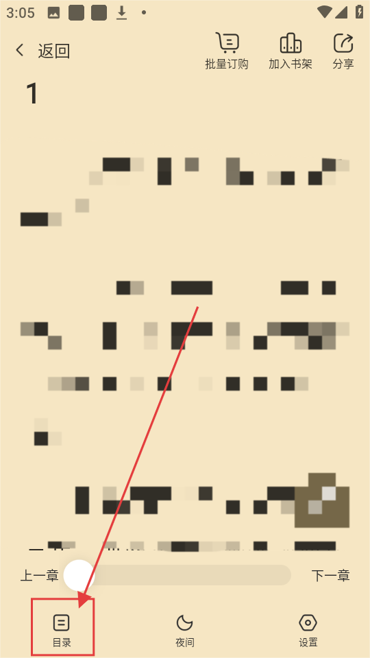 2、进入小说阅读页,能看到小说内容,若要查看章节列表,点击【目录】哦。