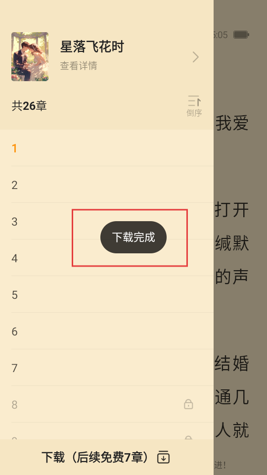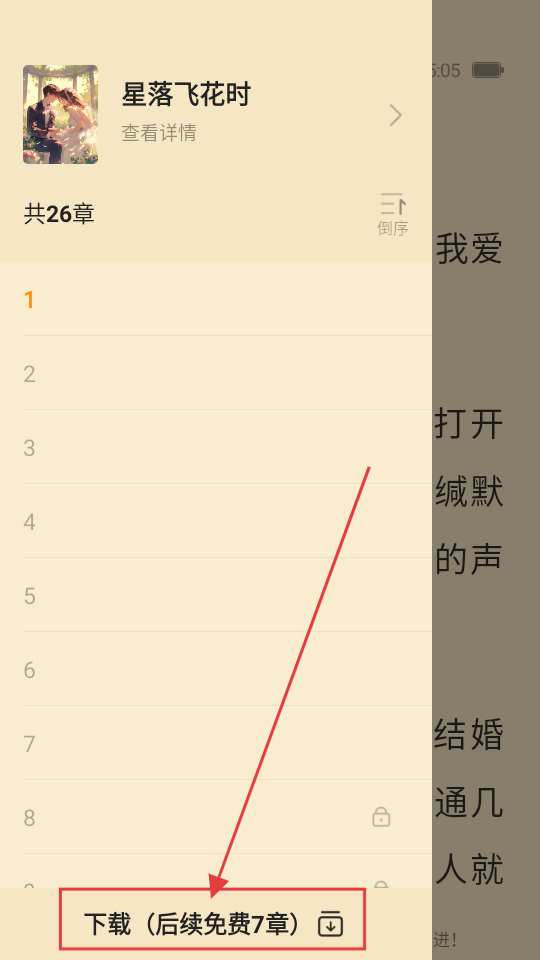 3、进入目录页面,能看到各章节,若要下载小说章节,点击【下载(后续免费7章)】呀。