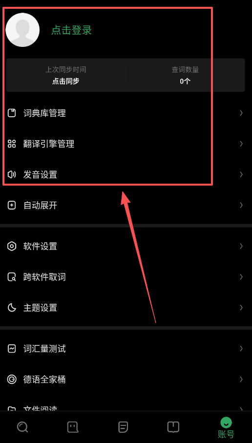 4、软件的个性化设置藏在最后一张图的菜单里。使用前记得先“点击登录”同步数据。