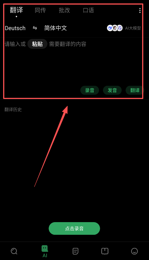3、遇到不认识的词或句子,直接用“翻译”功能,输入或者粘贴内容就行,支持德中互译。