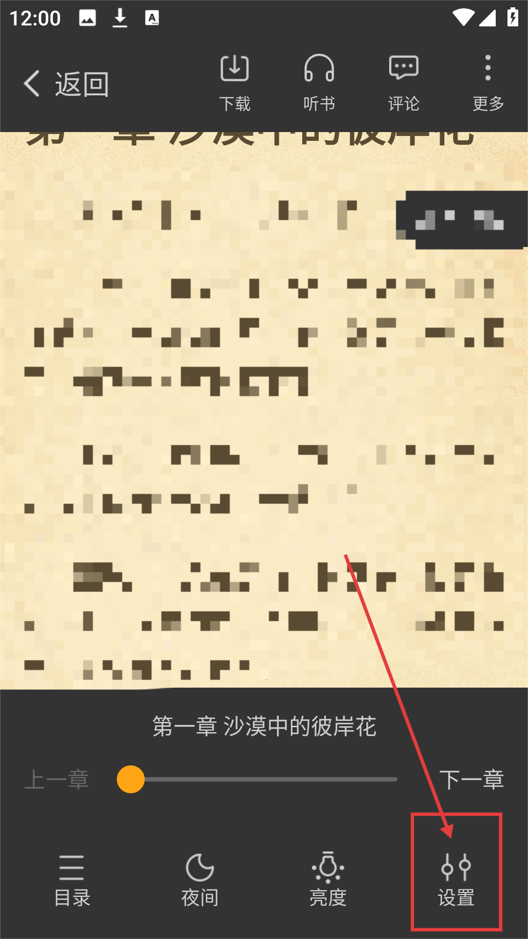 2、在阅读界面点击【设置】,展开设置选项,准备调整阅读体验哦。