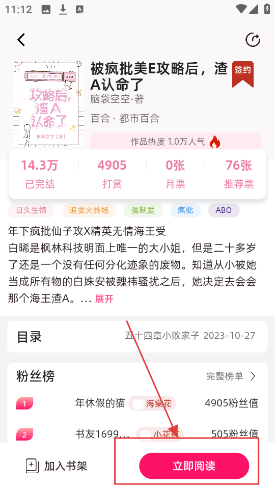 2、小说详情页点【立即阅读】,进入阅读界面,开启阅读之旅哦。