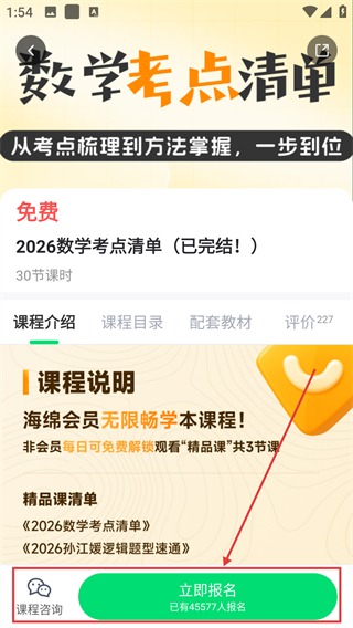 3、选定课程(如【2026数学考点清单】)后,点击【立即报名】按钮,即可完成课程报名,解锁学习权限呀。