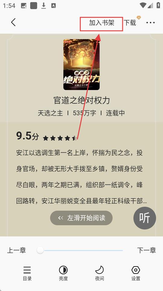 2、进入小说详情页,点【加入书架】就能方便后续阅读啦,别错过这个功能哦。