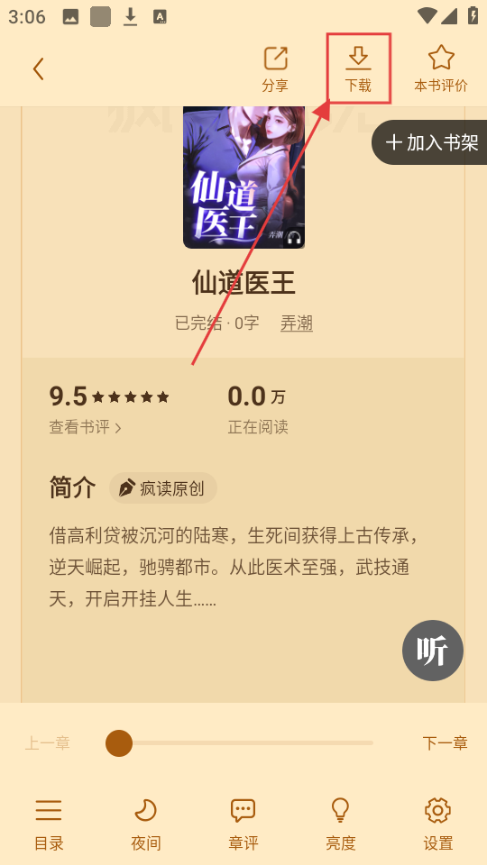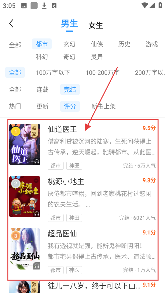 1、在小说分类页面,筛选出目标小说,比如【仙道医王】,点击进入小说详情页啦。