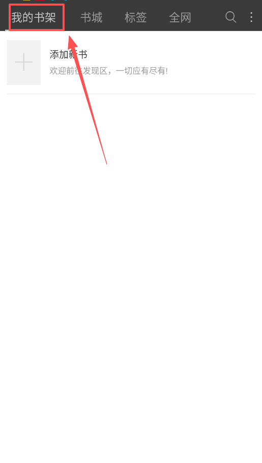 4、若首页显示书架为空,只需点击“添加新书”的提示,系统会引导你到书城的发现区域,通过翻阅各类排行榜和热门分类。