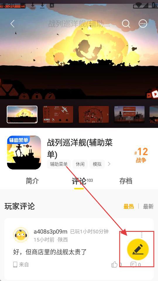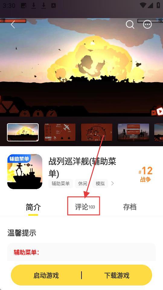 2、进入《战列巡洋舰(辅助菜单)》游戏详情页,若想查看玩家评论,点击【评论】,就能进入评论页面哦。