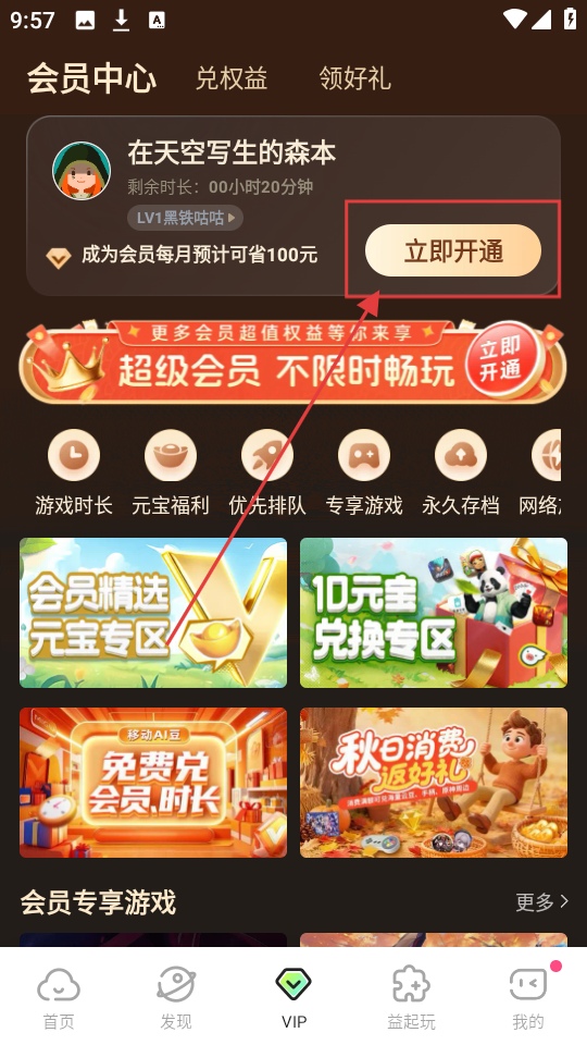 咪咕快游怎么开会员教程