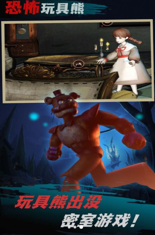 2、体验非常刺激的冒险故事,诡异的玩具熊将会出现追杀,让你快速的完成游戏带来体验。