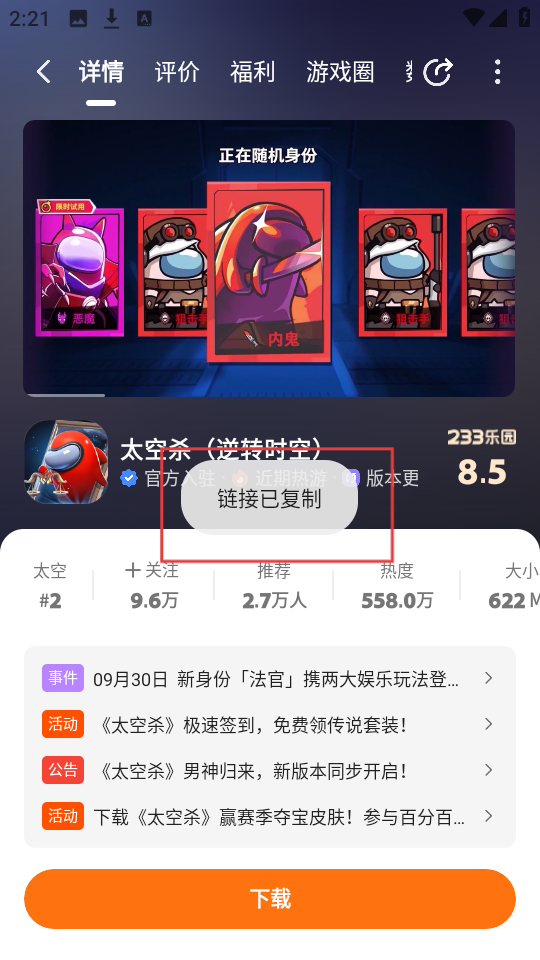 3、分享选项里有【复制链接】,点一下就能把游戏链接复制下来,想咋分享都成,超灵活的哟。