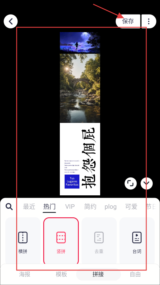 3、选好拼图样式后,点击右上角【保存】按钮,即可保存拼好的图片啦。